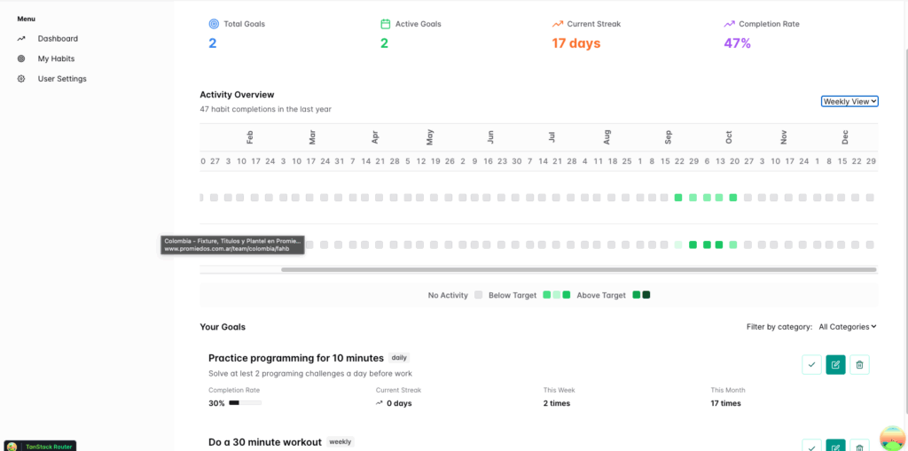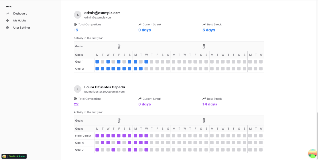 A comprehensive habit tracking platform built with FastAPI (backend) and React (frontend). It features a GitHub-style activity calendar, multi-user dashboards, rich goal management, and in-depth analytics to help users build consistent routines.
